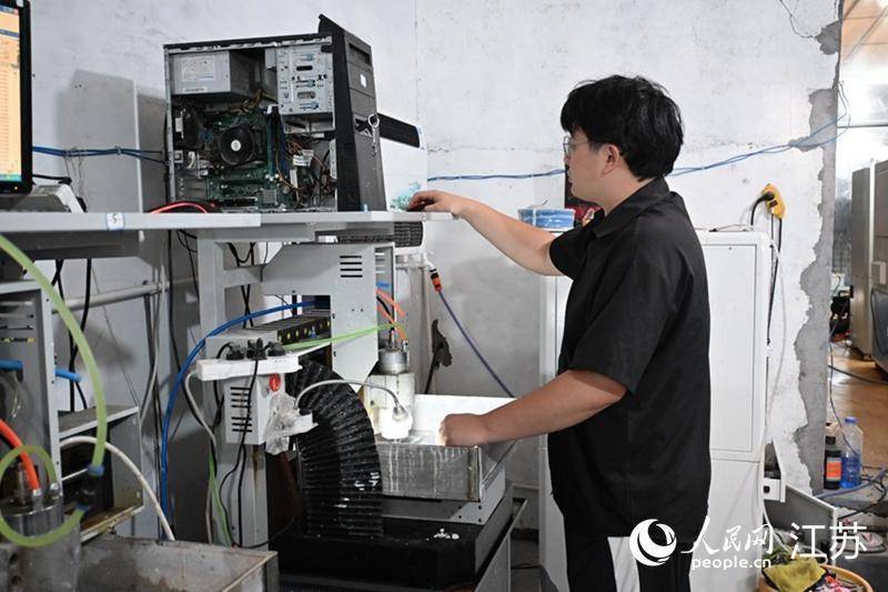 本地年轻从业者使用雕刻机械进行玉石设计。人民网记者 张瀚天摄